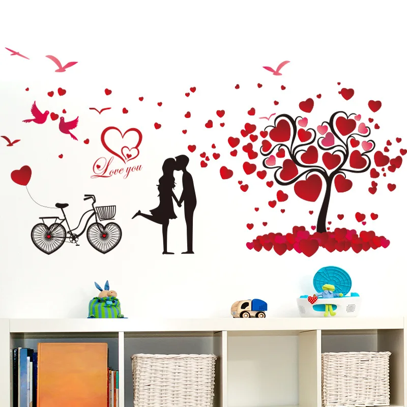 Top Elegant Romantic Red Hearts Birds Tree Wall Sticker Home Decor