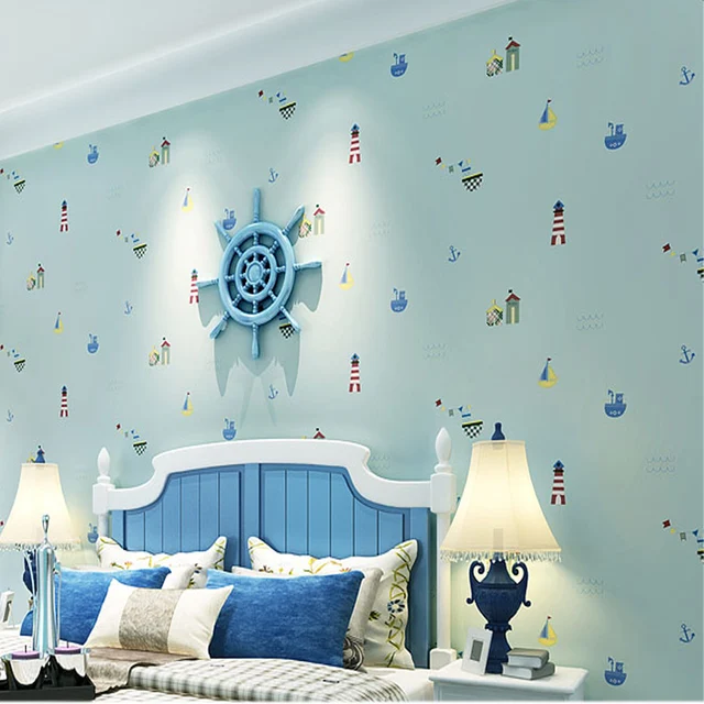 Mega Discount C0e3 Blue Mediterranean Children S Room Wallpaper