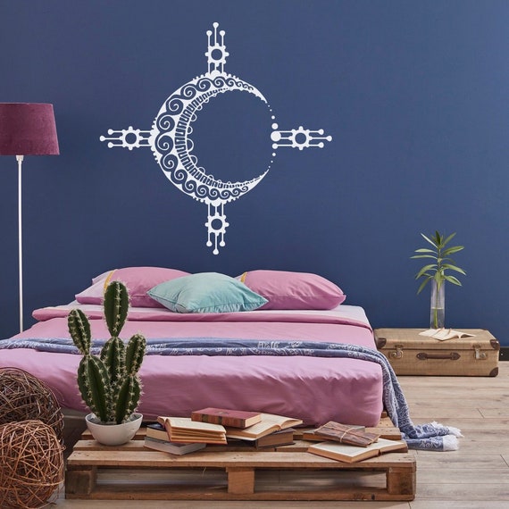 Boho Style Wall Decal Moon Art Bohemian Bedroom Decor Etsy