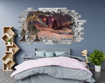 3d Dinosaur Wall Sticker Hole In The Decal Jurassic Park Etsy