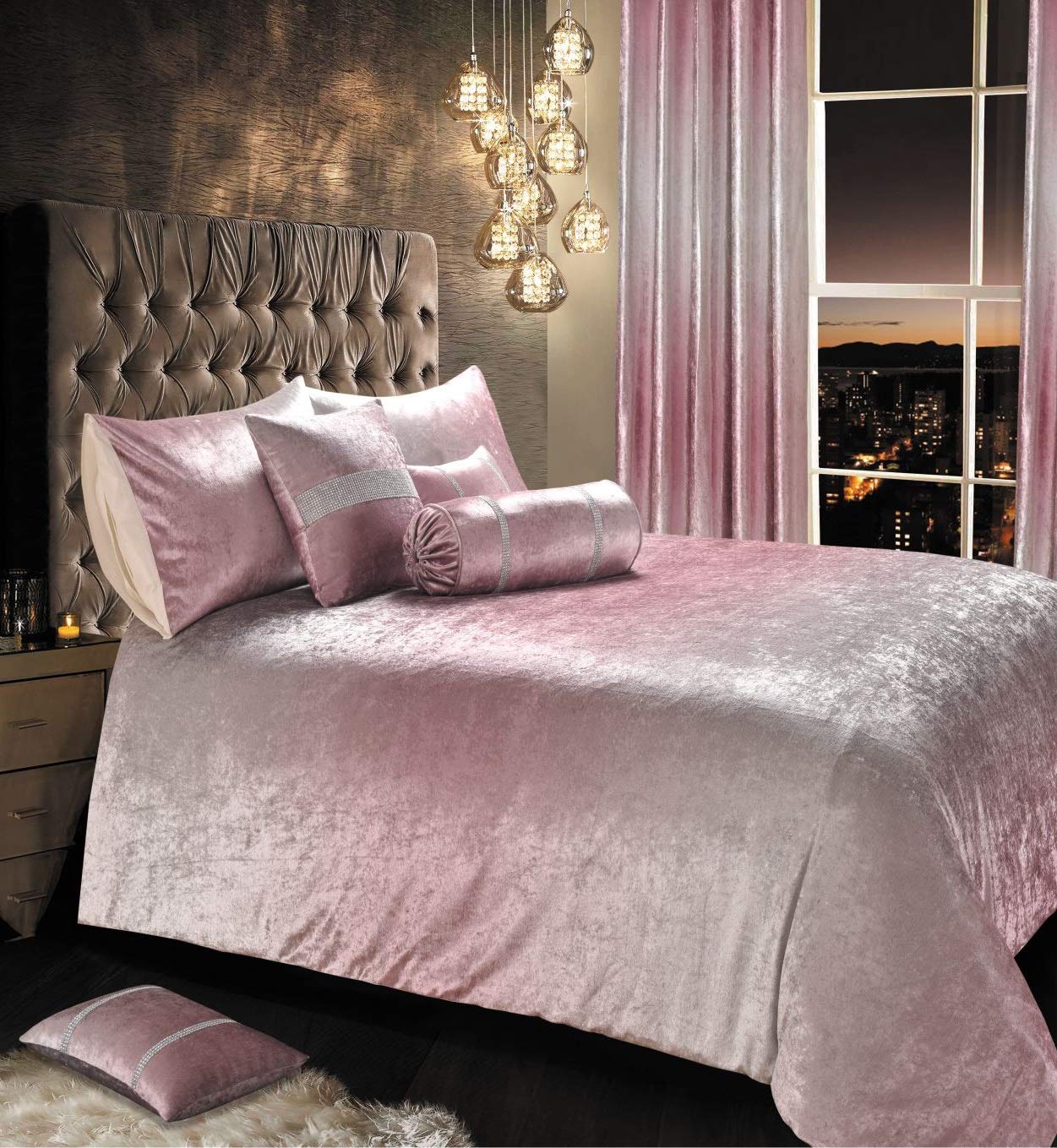 Ihidirect Luxury Crushed Velvet Ombre Pink Silver Bedroom Co