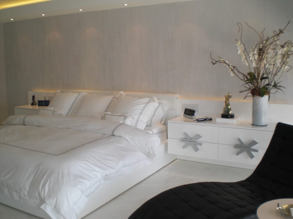 Master Bedroom In White And Silver Contemporary Bedroom