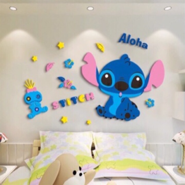 Cod 100x56cm Stitch Adhesive 3d Wall Sticker Shopee Philippines