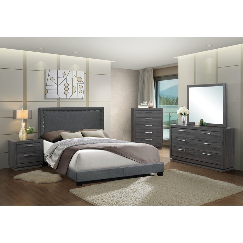 Pilaster Designs Dario 5 Piece Bedroom Set Full Gray Wood