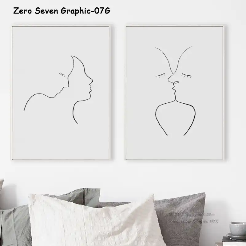 Abstract Decorative Pencil Drawing Line Kiss Canvas Painting