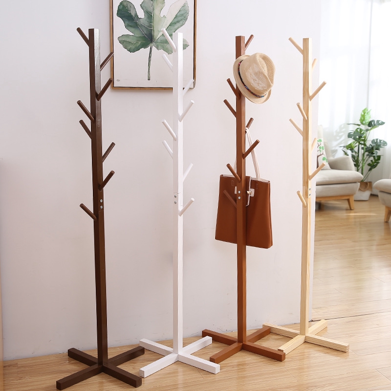 Removable Solid Wood Coat Rack Floor Simple Hangers Bedroom Living