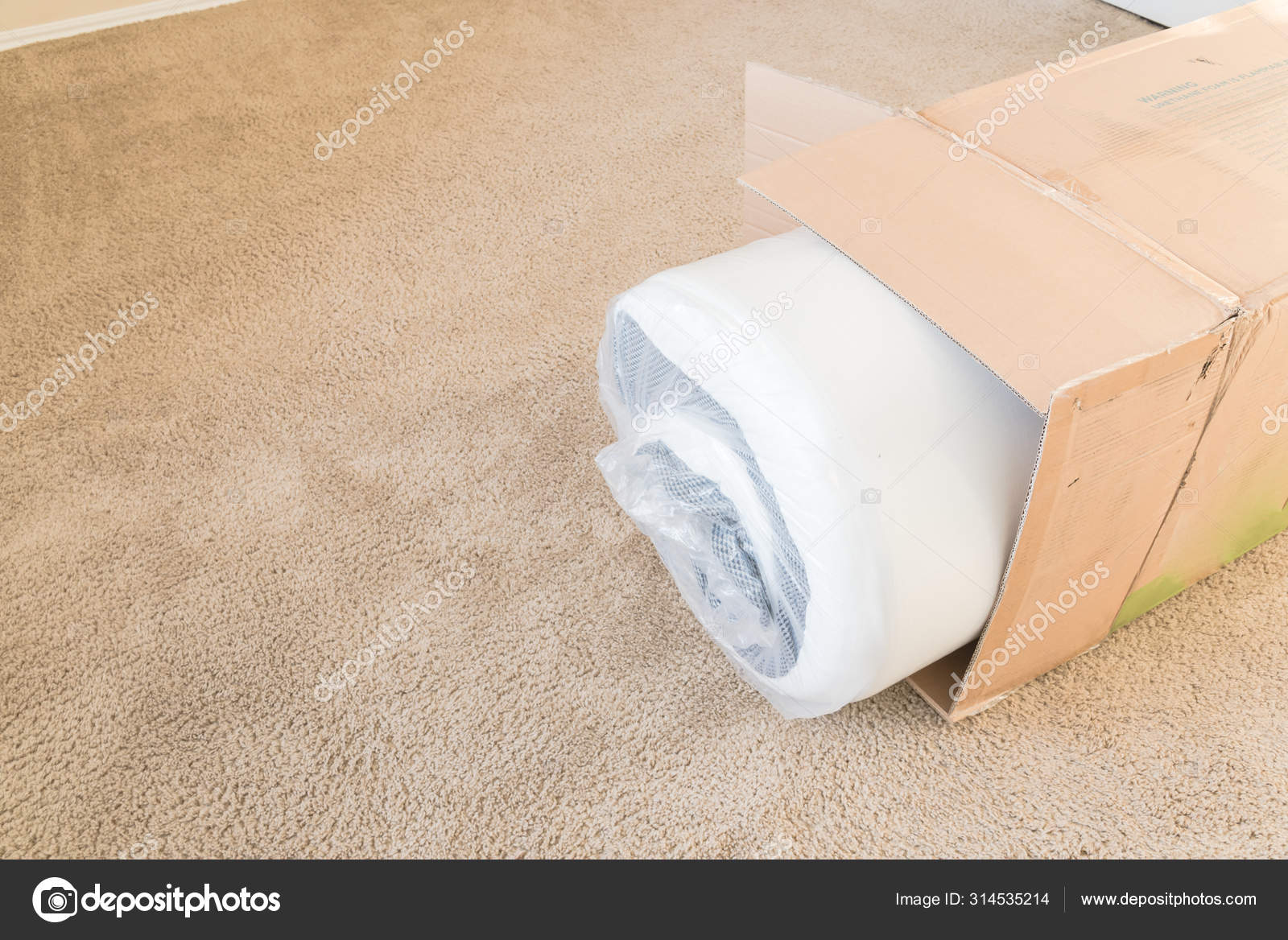 Close Up Top View Roll Packed Spring Mattresses Unbox On Carpet