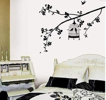 Birdcage Hanging On Tree Branch Wall Decal Removable Black Tree