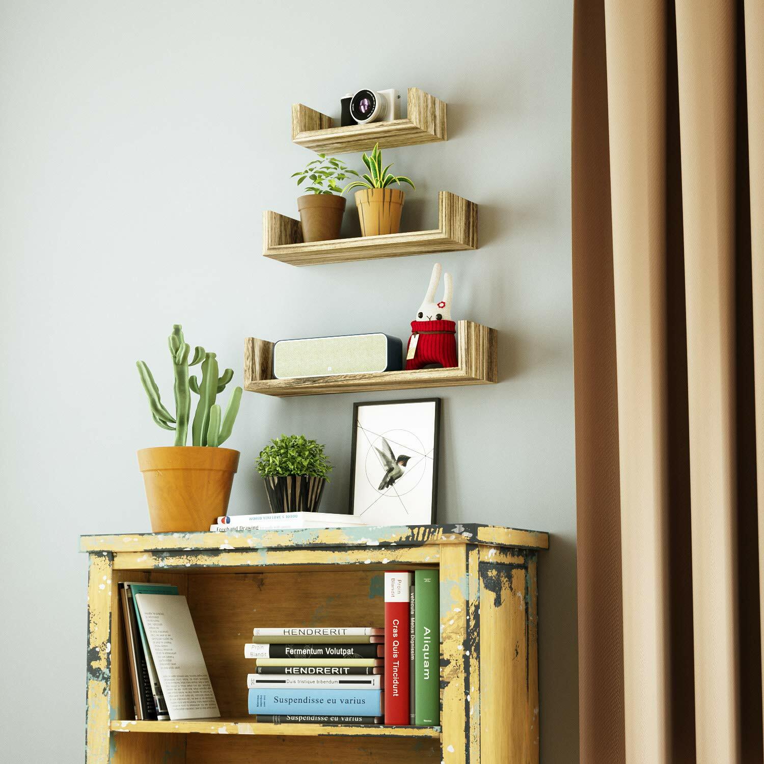 3 Pcs Wall Floating Shelves Wood For Bathroom Living Room Bedroom